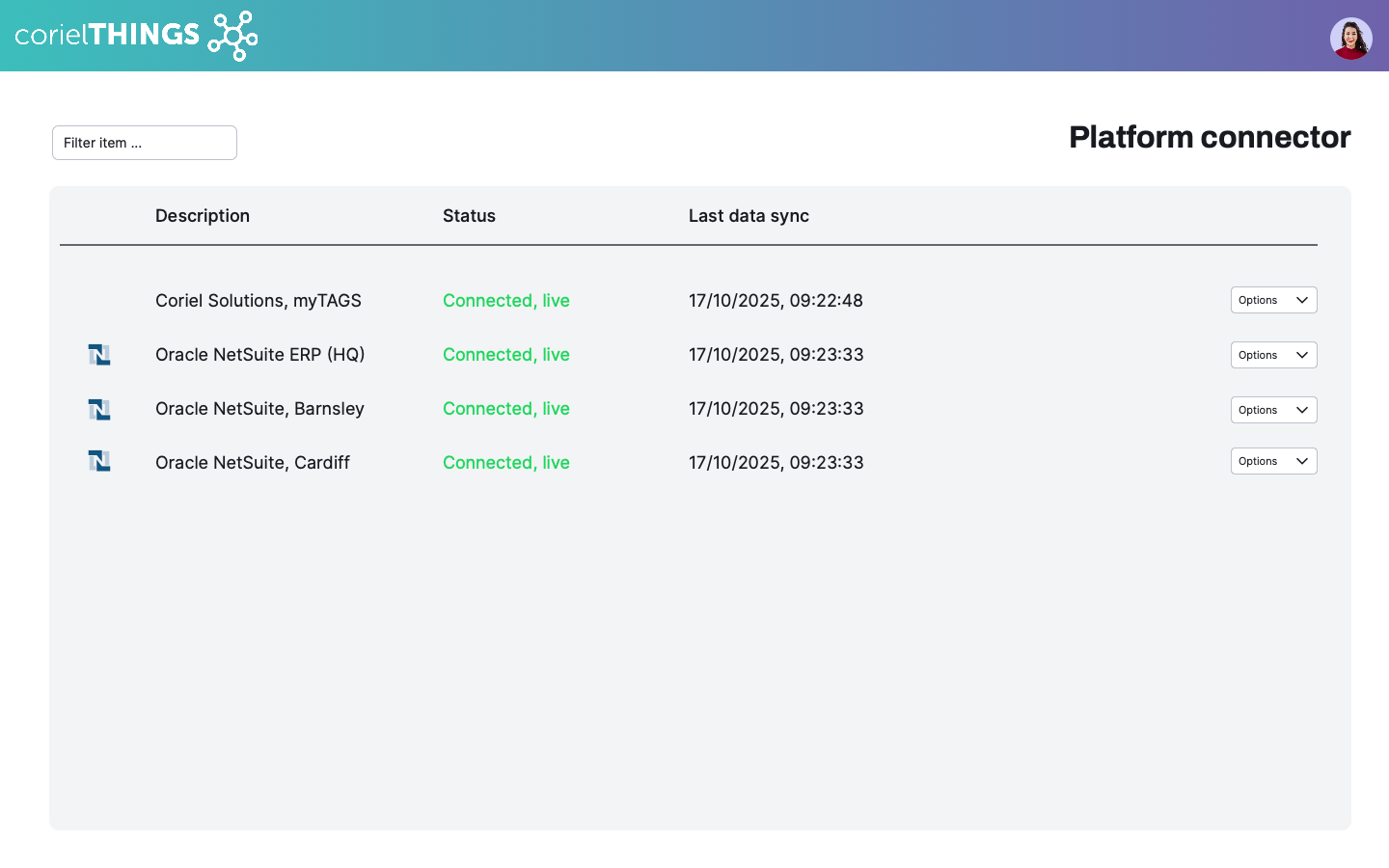 corielTHINGS is a completely connected platform, allowing you to integrate your ERP, WMS or bespoke systems via simple web calls.