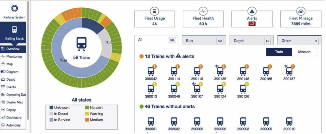 After automated inspection by the TrainScanner, the data is transmitted to Alstom’s HealthHub™ platform which translates raw data into actionable information, by using rule-based algorithms, leading to the calculation of a health index for each asset. HealthHub™ quickly analyses the condition of critical parts on engines, carriages and freight vehicles as they drive though the portal. A combination of scanners and visioning systems can detect excessive wear tear, cracks and damages allowing engineers to quickly make decisions on if parts need further inspection or replacement.
